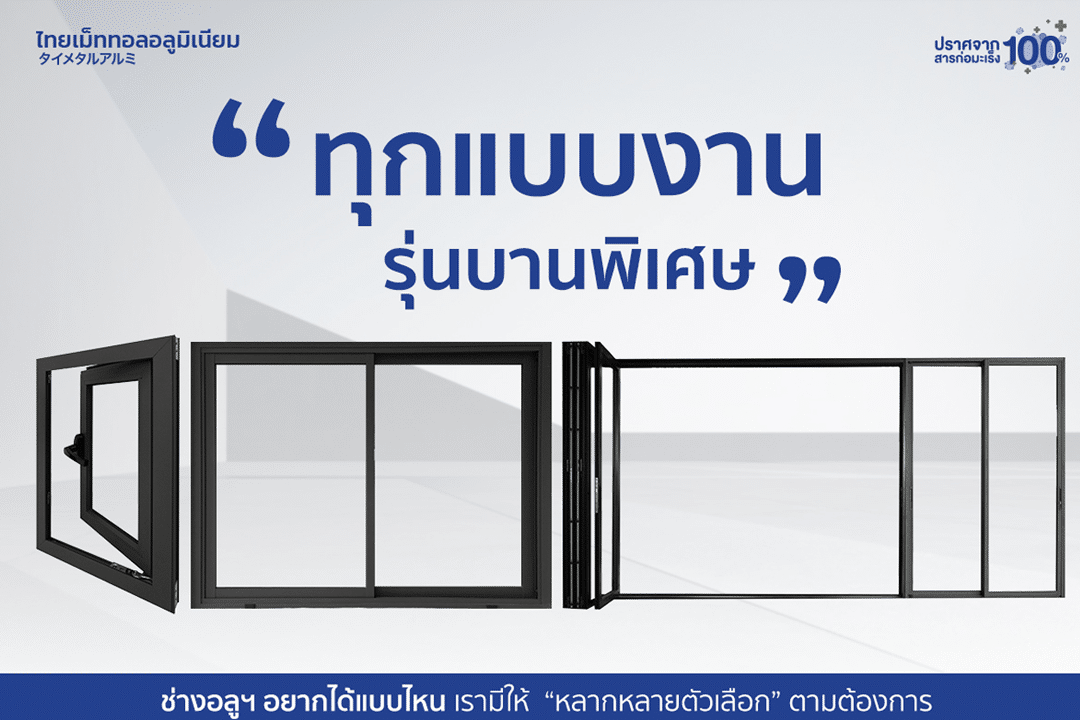 ไม่ว่าจะเป็นบานกระทุ้งอย่างในภาพ จนไปถึงบานอลูมิเนียมรูปแบบไหนๆ ไทยเม็ททอลก็พร้อมให้คำปรึกษา พร้อมตอบโจทย์ทุกงานออกแบบที่เกี่ยวข้องกับบานประตู-หน้าต่างอลูมิเนียมของคุณ
