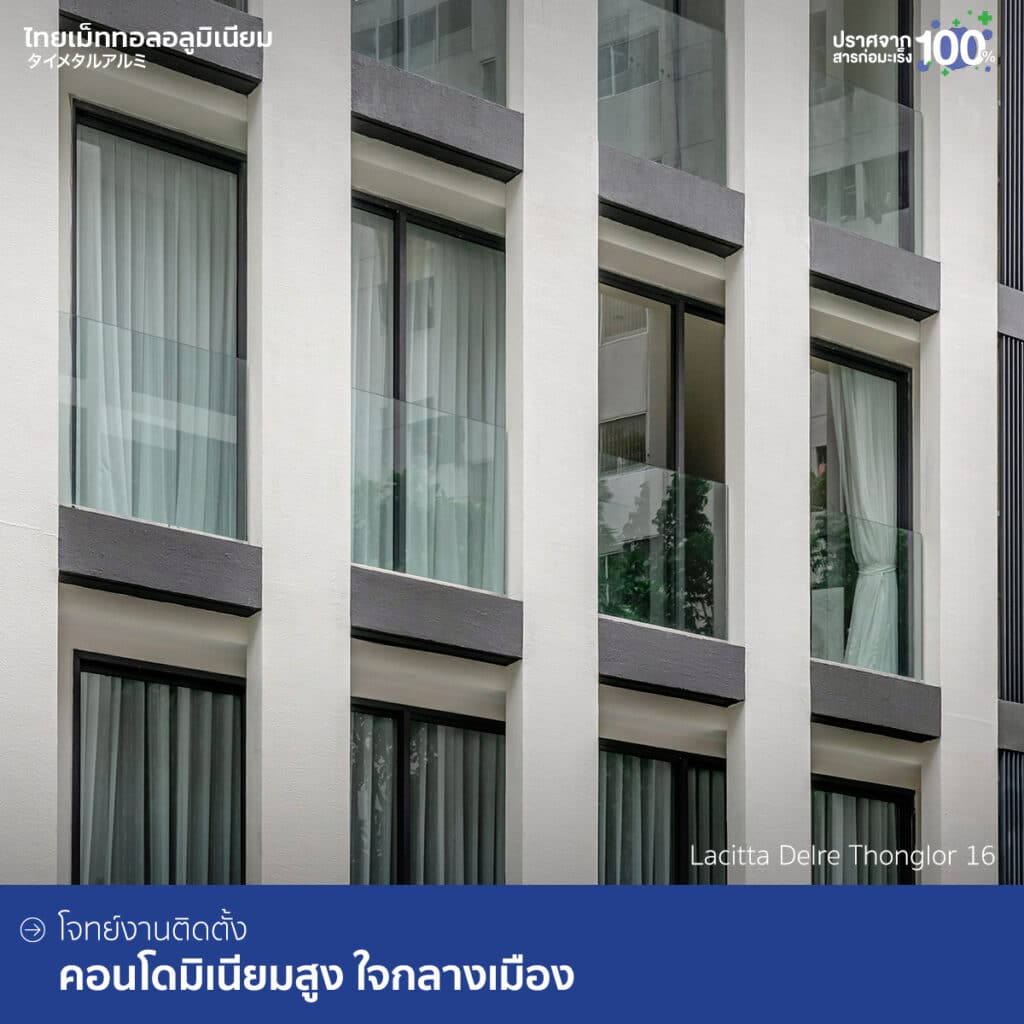 อลูมิเนียมไทยเม็ททอล เป็นอลูมิเนียมที่คำนึงถึงสุขภาพของทุกคนที่มีส่วนเกี่ยวข้องเป็นอันดับแรก จากกระบวนการผลิตที่เราพิถีพิถัน ใส่ใจที่จะยกระดับคุณภาพชีวิตตั้งแต่เริ่มไปจนตลอดอายุการใช้งาน ทำให้มั่นใจทุกครั้งที่ใกล้ชิด และสัมผัส เป็นเหตุผลให้หลากหลายโครงการเลือกไว้ใจในคุณภาพของอลูมิเนียมไทยเม็ททอล และวันนี้เรามีภาพตัวอย่างโครงการชั้นนำที่เลือกใช้อลูมิเนียมไทยเม็ททอล ติดตั้งได้ออกมาได้อย่างสวยหรู ดูมีระดับ ช่วยแก้ปัญหาตอบโจทย์งานของโครงการในแต่ละที่ได้อย่างเนียนตา ไม่ว่าจะเป็นบ้านพักอาศัย คอนโดมิเนียม อาคารสูง รวมถึงหน่วยงานภาครัฐ