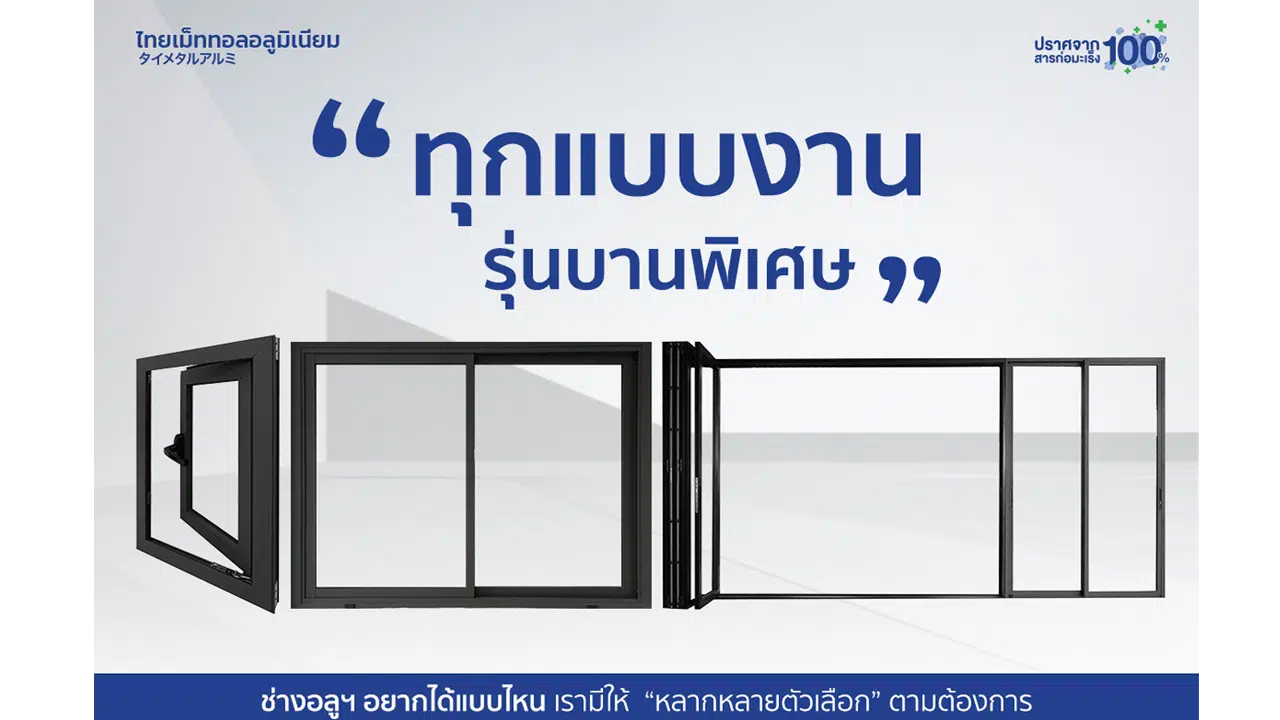 วันนี้ไทยเม็ททอล อลูมิเนียมเพื่อนช่างขอหยิบยก ตัวอย่างประตู-หน้าต่างอลูมิเนียมรุ่นพิเศษ ให้ช่างอลู ฯ ทุกคนมองเห็นความเป็นไปได้ของตัวเลือกที่หลากหลายในงานติดตั้งแต่ละแบบสำหรับหน้างาน และความต้องการของลูกค้าเจ้าของบ้านที่แตกต่างกันไป โดยมั่นใจได้ในคุณภาพที่เหมาะกับทุกโจทย์งาน ตั้งแต่งานโครงการบ้าน-คอนโด สำนักงานตลอดไปจนถึงอาคารสูง ซึ่งไม่ว่าจะต้องการบานรูปแบบไหนเรามีให้ครบ เพียงทักเข้ามาปรึกษา-สอบถามรายละเอียด