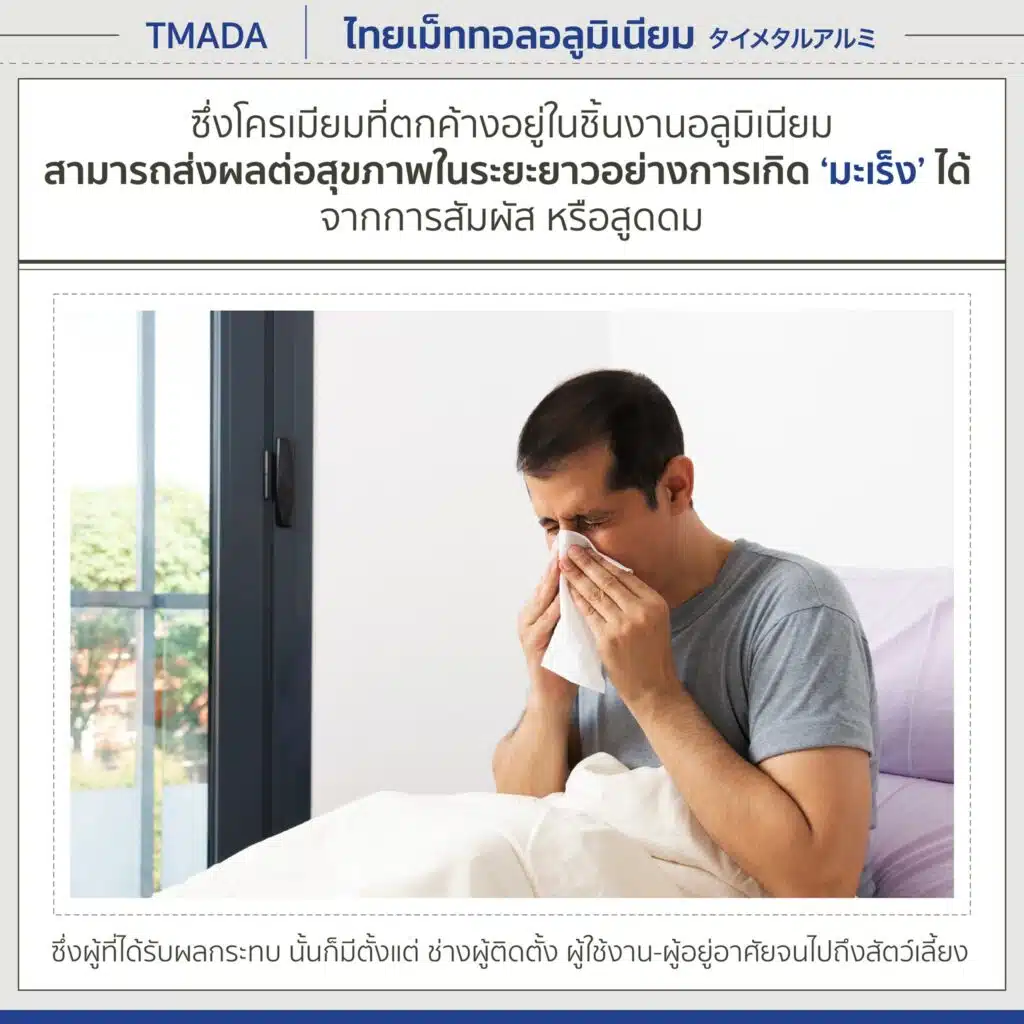 ที่หากมนุษย์เรารับโครเมียมที่ตกค้างในชุดอุปกรณ์อลูมิเนียมต่างๆ ผ่านการสัมผัสหรือการสูดดม ก็อาจก่อให้เกิดปัญหาสุขภาพของผู้ใช้งานในระยะยาว โดยเฉพาะอย่างยิ่ง ‘มะเร็ง’ ได้
