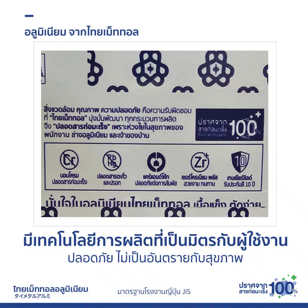 สิ่งแวดล้อม คุณภาพ และความปลอดภัย คือความรับผิดชอบที่ “ไทยเม็ททอล” มุ่งพัฒนาในทุกกระบวนการผลิตทำให้ได้ชิ้นงานอลูมิเนียมที่ “ปราศจากสารก่อมะเร็ง 100%” เพราะเราใส่ใจในสุขภาพของช่างอลูมิเนียม,พนักงานในโรงงาน ตลอดไปจนถึงเจ้าของบ้าน ไม่มีอันตรายจากสารเคมีตกค้าง