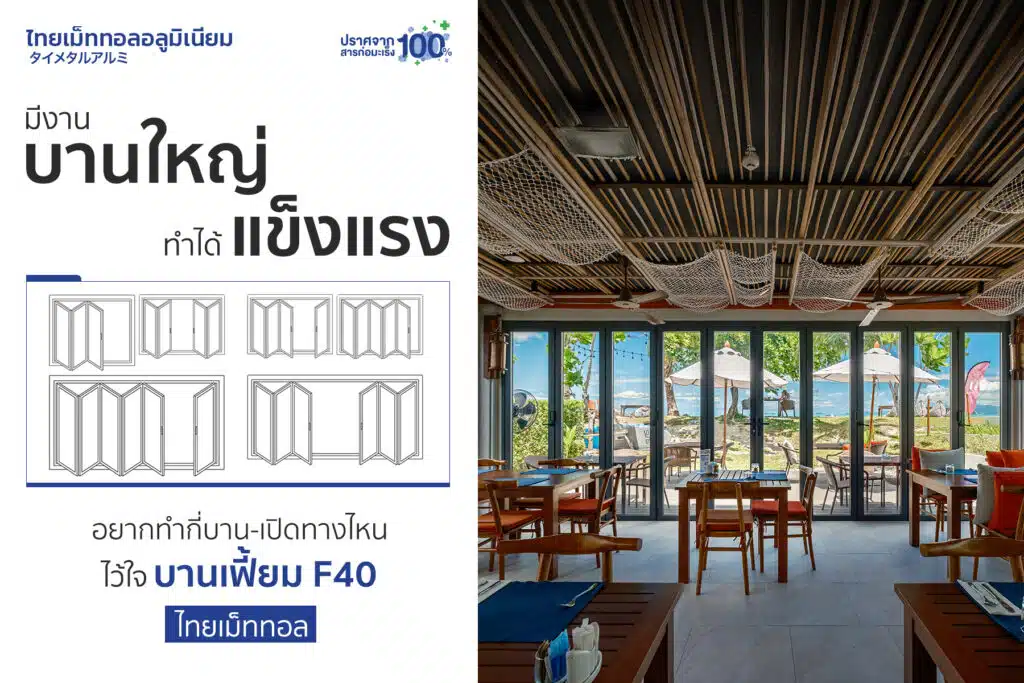 บานเฟี้ยม F40 ไทยเม็ททอล บานใหญ่ แข็งแรง อยากทำกี่บาน-เปิดทางไหนก็ได้หมด