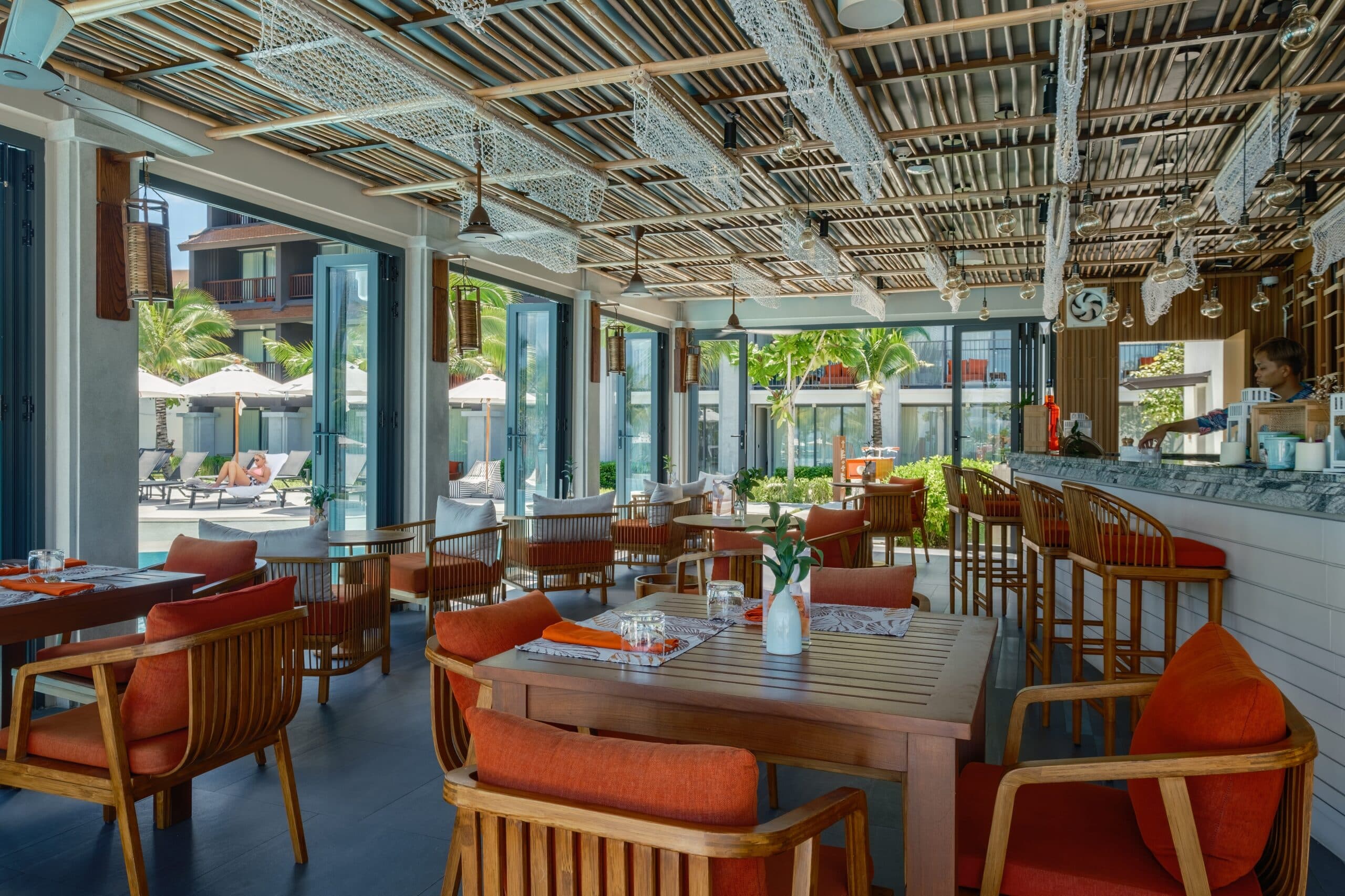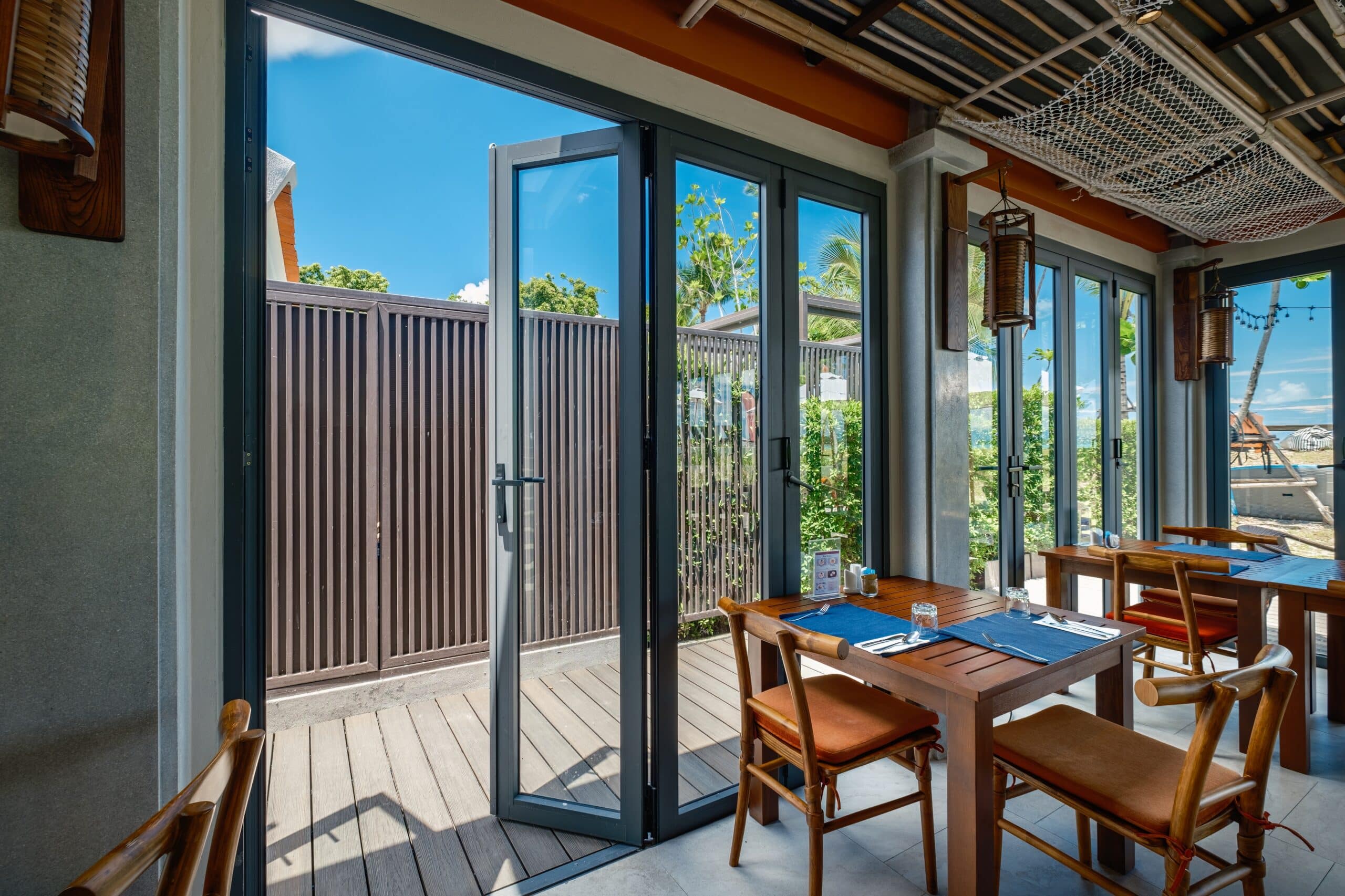 พื้นที่ส่วนกลางของโรงแรม ทาง U Samui ต้องการให้รับวิวได้เต็มที่ จึงเลือกใช้ประตูบานเฟี้ยม F40 จากไทยเม็ททอล ซึ่งเป็นอีกหนึ่งรูปแบบประตูที่สะดวกต่อการใช้งาน สามารถพับเปิด-ปิดได้อย่างอิสระและกว้างขวาง ทำให้มีอากาศถ่ายเทอย่างทั่วถึง และยังรองรับการใช้งานที่หลากหลาย โดยระบบของบานเฟี้ยมที่เลือกติดตั้งจะเป็นแบบรางฝังพื้น เพื่อป้องกันไม่ให้เดินสะดุด