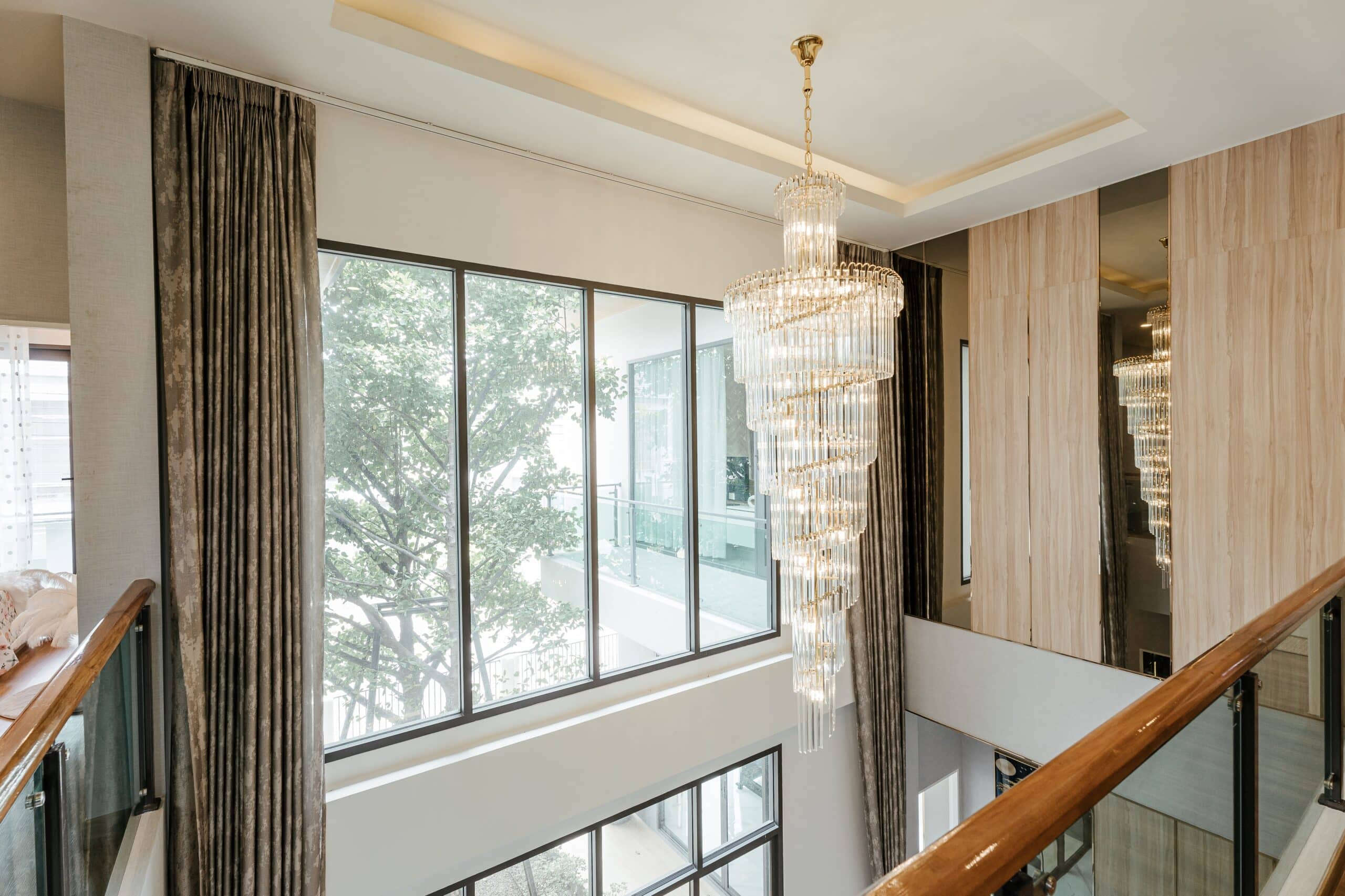 ห้องโถงสูงโปร่งบริเวณชั้น2 ของบ้าน เลือกใช้บานช่องแสงเพื่อรับแสงจากภายนอกได้เต็มที่ สามารถมองเห็นวิวทิวทัศน์บรรยากาศภายนอกได้อย่างชัดเจน