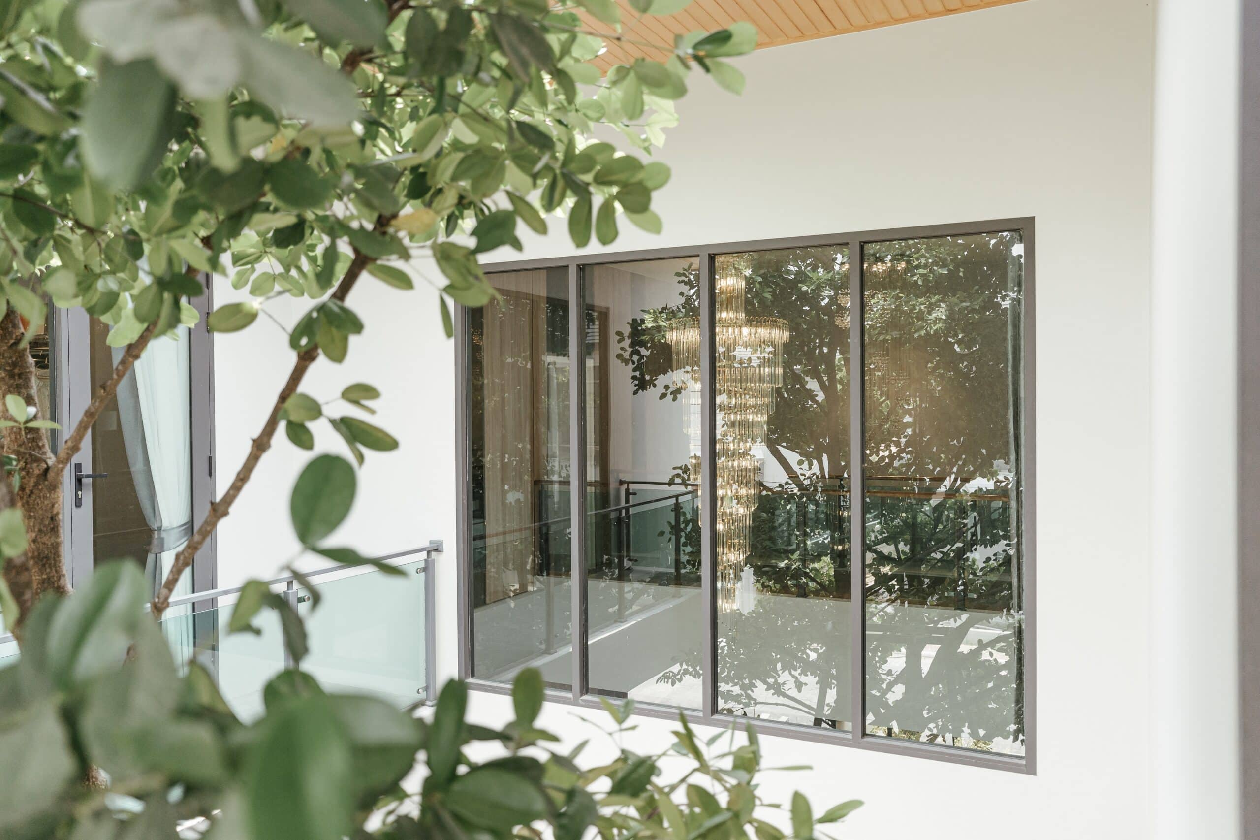 การเลือกโทนสีกรอบบานประตู-หน้าต่าง ถือเป็นหัวใจสำคัญของการออกแบบ ช่วยเติมเต็มความหรูหราและความทันสมัย เพราะการตัดกันระหว่างสีผนังสีขาวกับบานกรอบหน้าต่างอลูมิเนียมสีเทา Sahara Grey จะช่วยเน้นการแบ่งช่องเปิดที่เป็นระเบียบให้โดดเด่นขึ้น ช่วยยกระดับดีไซน์หน้าตาของบ้าน จากความเรียบง่ายให้กลายเป็นเรียบหรูได้ภายในพริบตา