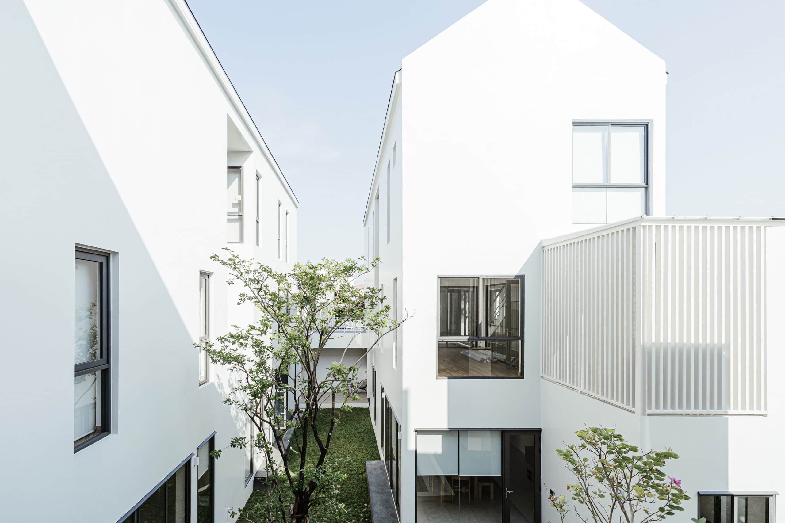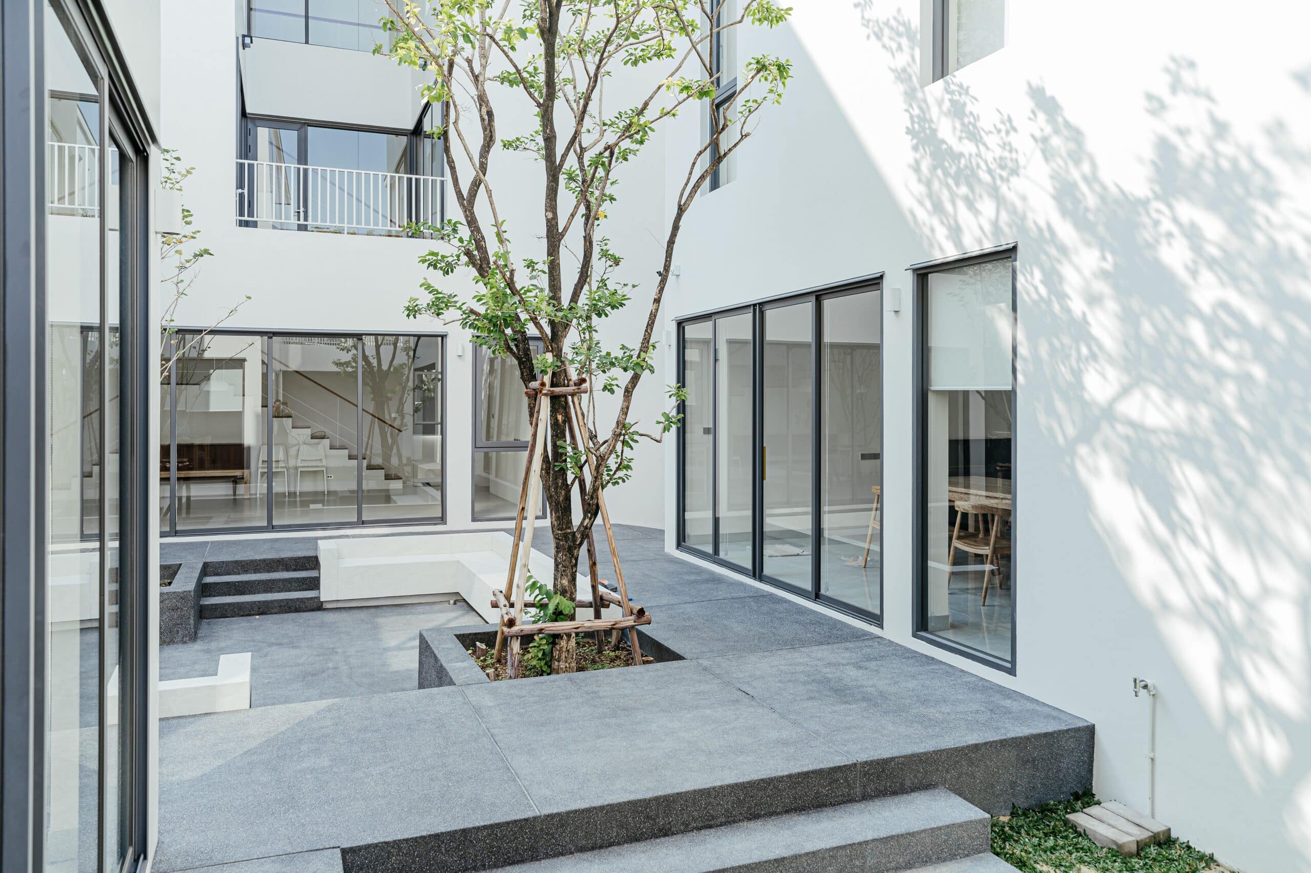 บ้านเดี่ยวขนาดใหญ่ที่ออกแบบแปลนบ้านเป็นตัว U ล้อมรอบ Courtyard กลางตัวบ้าน ที่สร้างเอาไว้เพื่อมอบพื้นที่สีเขียว ช่วยให้ผู้พักอาศัยรับแสงธรรมชาติ ผ่านกระจกประตู-หน้าต่าง บานเลื่อนขนาดใหญ่ที่ติดตั้งโดยรอบ ซึ่งออกแบบให้ประตูบางจุดทำความสูงจนถึงเพดาน (floor to ceiling) เพื่อรับวิวและแสงจากภายนอกได้เต็มที่ ช่วยเพิ่มความโปร่งโล่ง และทำให้ภาพรวมของบ้านดูกว้างขึ้น