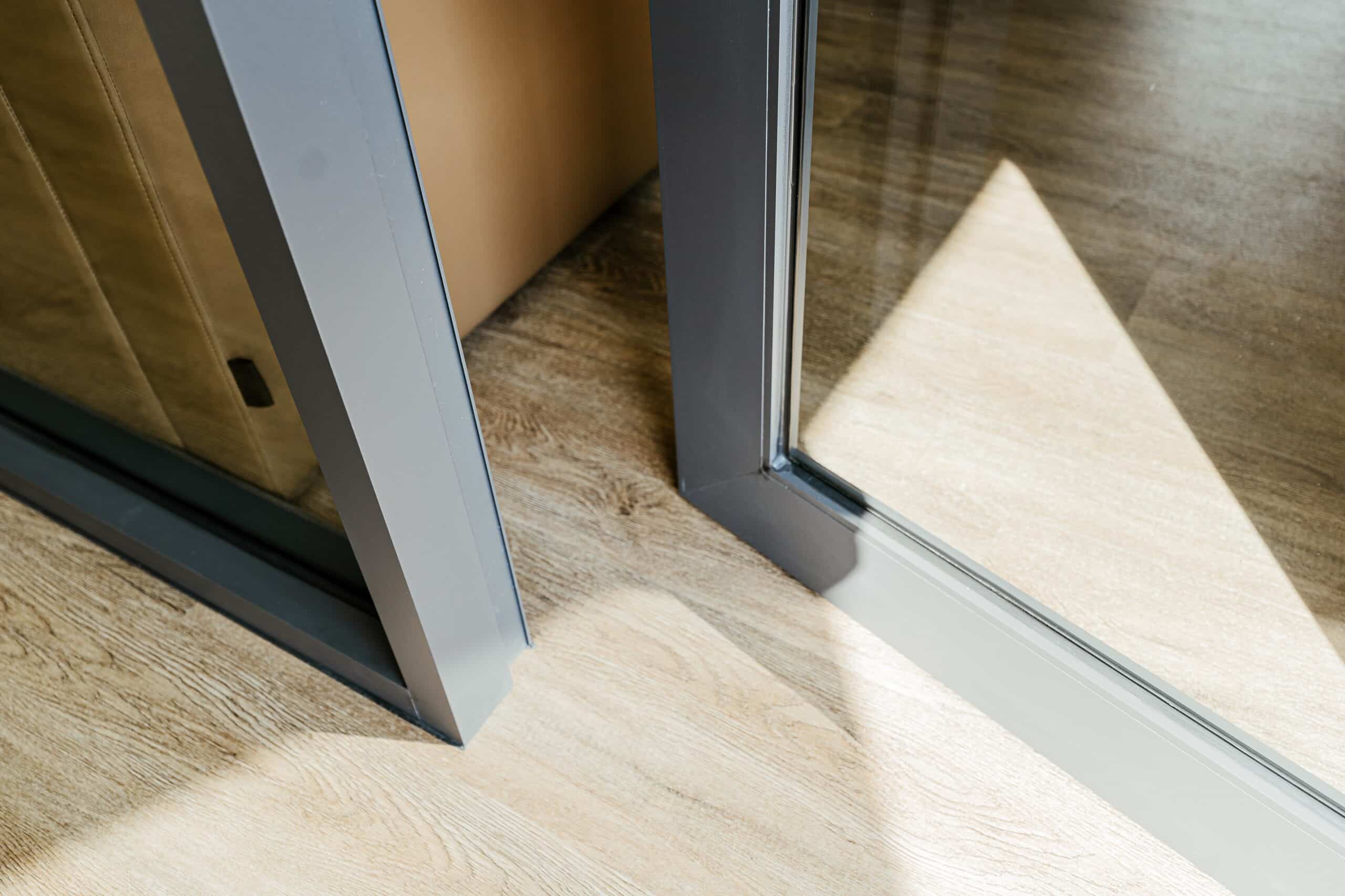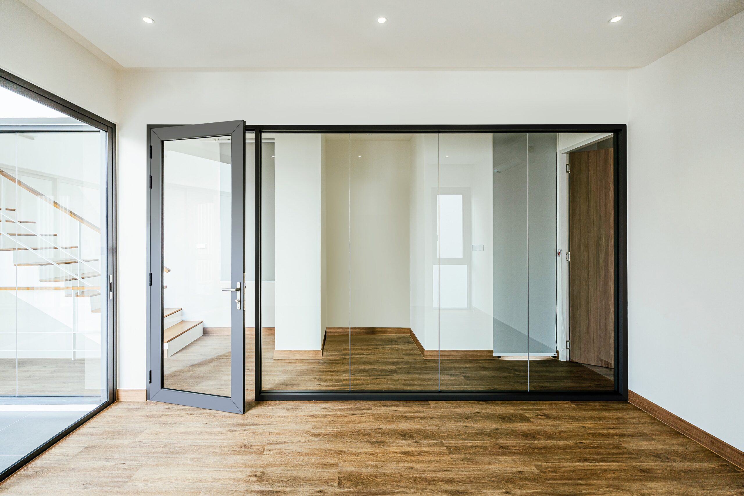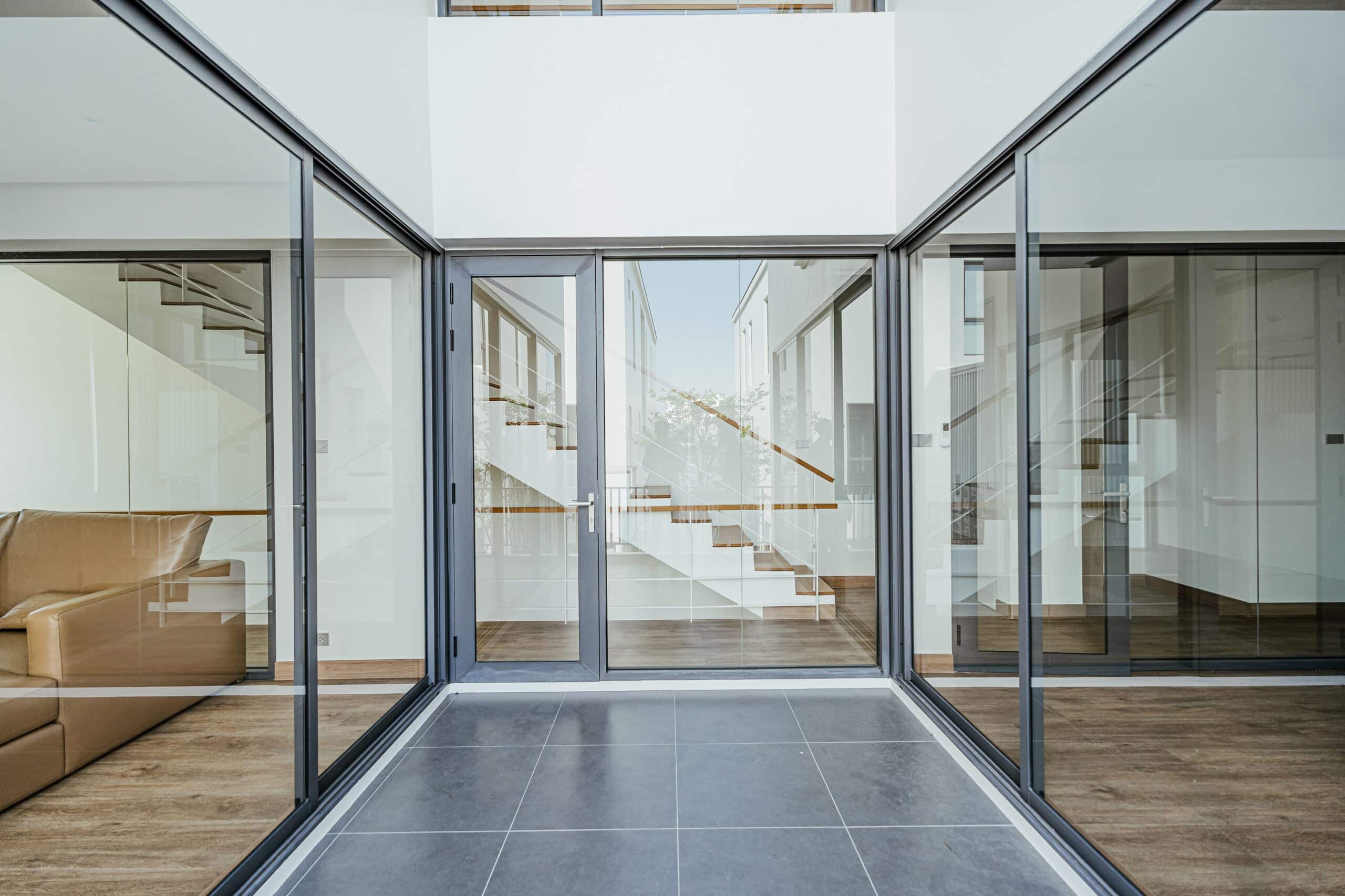 ภายในบ้าน มีการติดตั้งประตูบานเลื่อน 3 บาน ในบริเวณที่เชื่อมต่อกับระเบียง โดยข้อดีของประตูบานเลื่อน 3 บาน คือมอบพื้นที่การเปิดที่มากกว่า เมื่อเลื่อนเปิดแต่ละบานให้มาซ้อนกันที่ฝั่งใดฝั่งหนึ่งแล้ว จะมีพื้นที่เปิดมากกว่าถึง 2 ใน 3 และยังช่วยลดเส้นกรอบประตูหน้าต่างที่อาจกวนสายตาผู้พักอาศัย