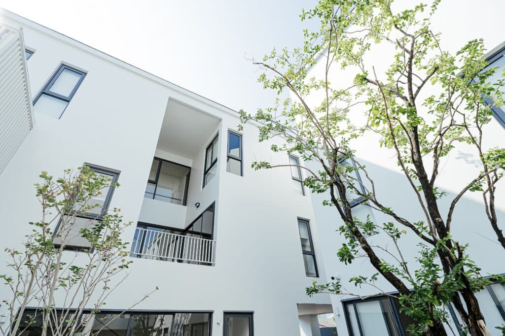 ตัวบ้านโดดเด่นด้วยสไตล์โมเดิร์นร่วมสมัย ด้วยการออกแบบที่เน้นลายเส้นชัดเจน โดยเลือกใช้ผนังสีขาวที่ให้ความเรียบง่าย ปลอดโปร่ง สบายตา และเพิ่มความน่าสนใจด้วยการเลือกใช้กรอบประตู-หน้าต่างอลูมิเนียมสีเทาซาฮาร่า เพื่อให้ตัดกับผนังสีขาวอย่างมีมิติ