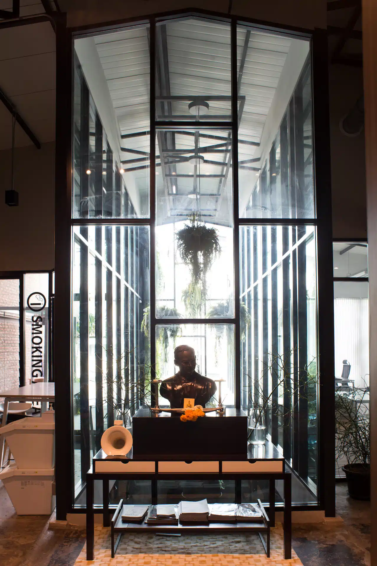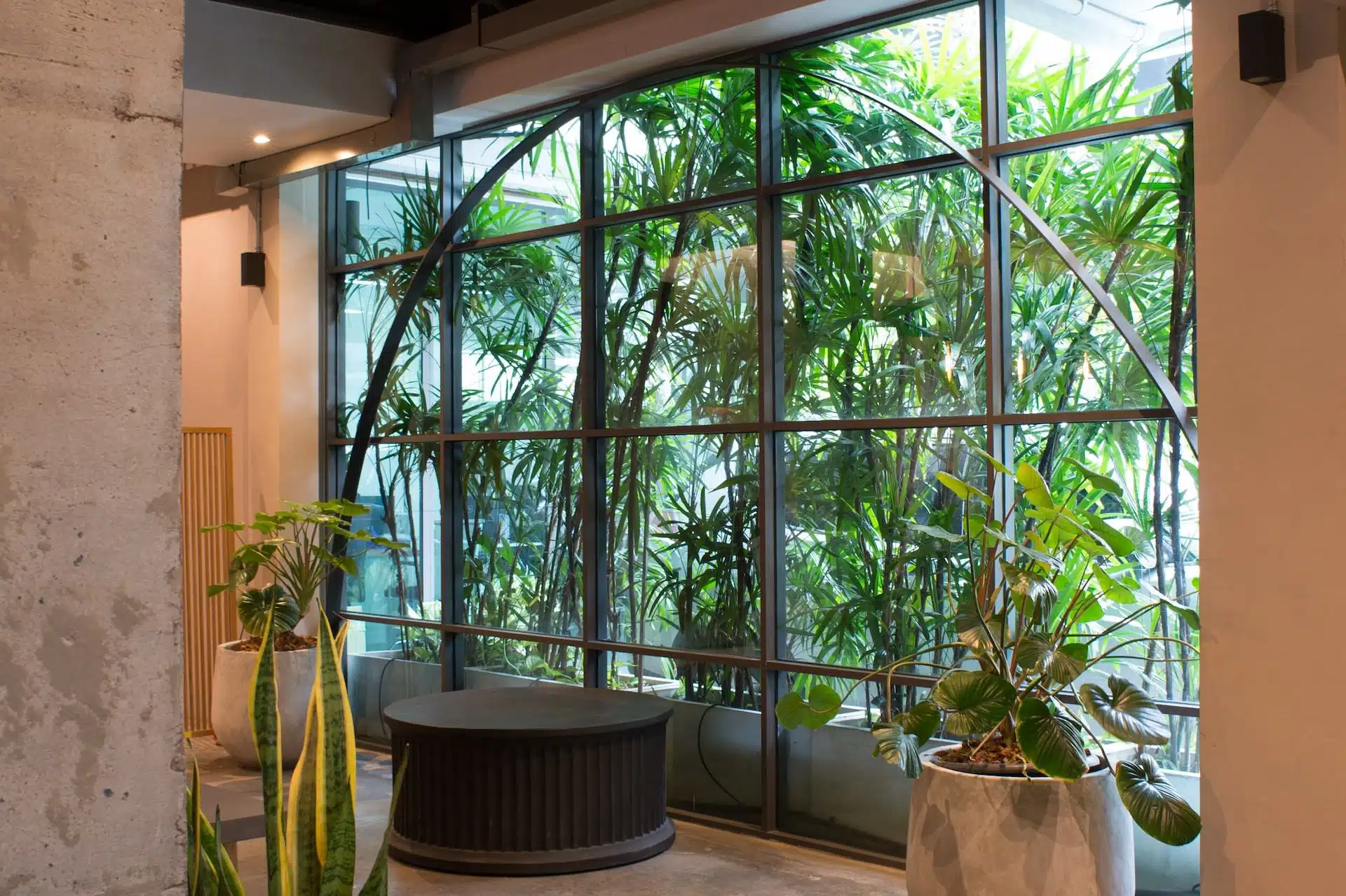 หรือหากต้องการความเป็นส่วนตัว ก็สามารถดัดแปลงด้วยการนำกระจกลูกฟูกที่มีคุณสมบัติโปร่งแสงมาใช้แทนกระจกใส ในจุดที่ยังต้องการให้แสงสว่างส่องผ่าน แต่ไม่ต้องการให้คนภายนอกมองเข้ามา