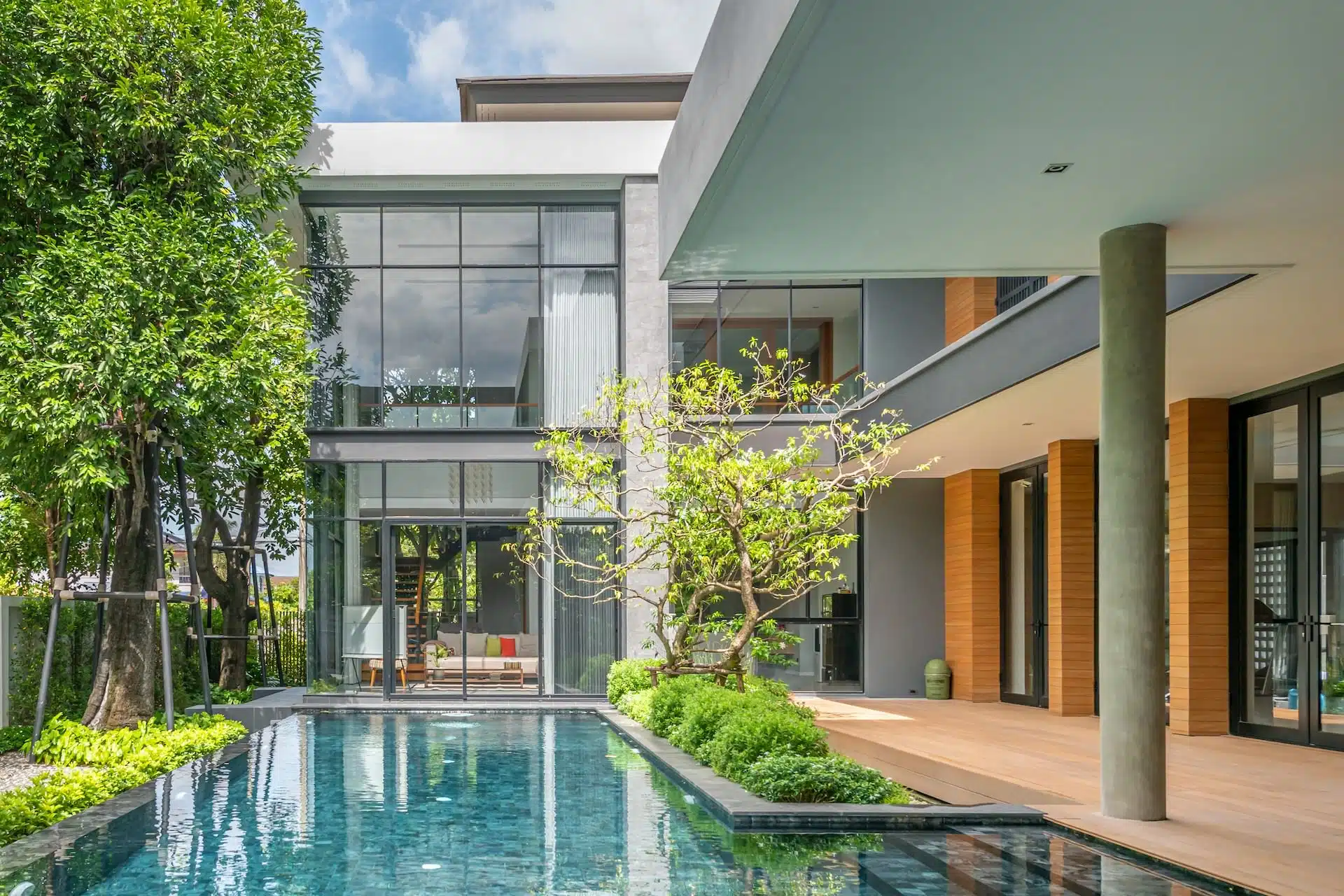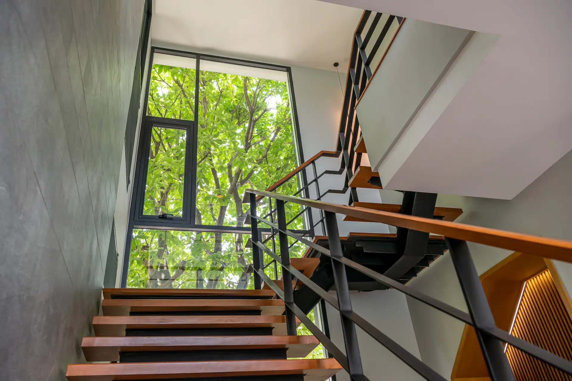 ตัวอย่างการใช้ช่องแสงขนาดใหญ่ แทนผนังชั้น 2 ของตัวบ้าน